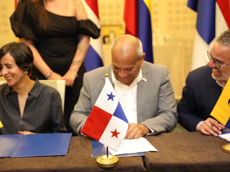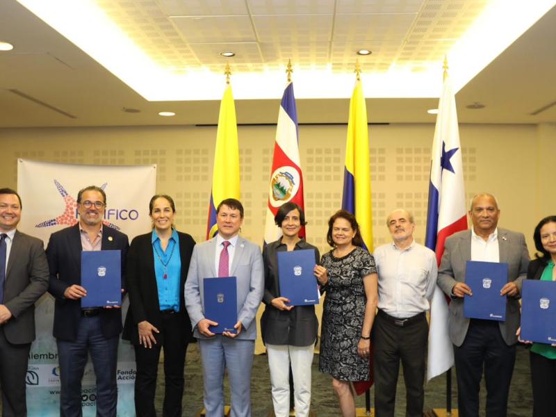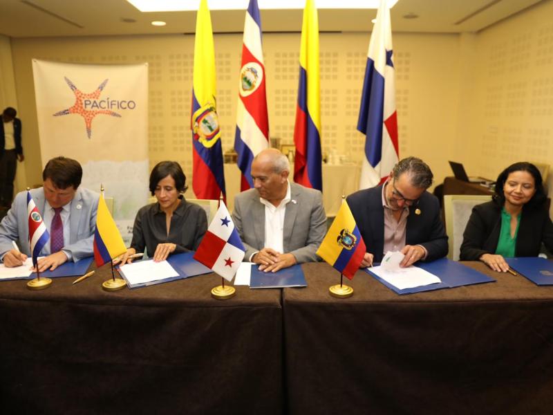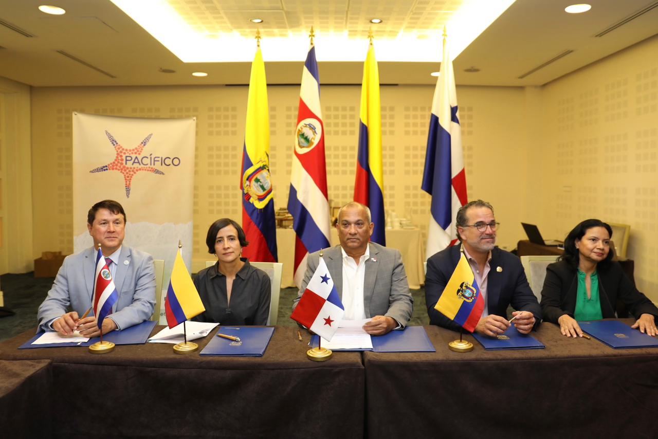 Milciades Concepción, Ministro de Ambiente de Panamá y Presidente Pro Témpore del CMAR, junto a los ministros de Ambiente de Ecuador, Costa Rica, Colombia como representantes del Comité Regional Ministerial del CMAR firmaron el documento junto a Rosa Montañez Gallego, como Presidenta del Consejo de Fundación PACÍFICO.